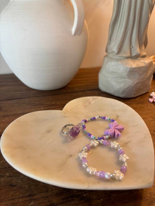 Sweet purple bow bracelet with flower pearl bracelet and a sweet candy adjustable ring.